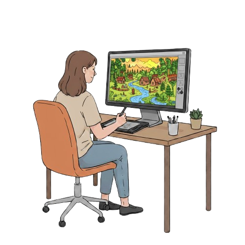 After that, we design the backgrounds and environments where the story takes place. Lighting, atmosphere, and small details are added to make every scene look natural and immersive.