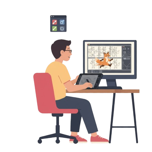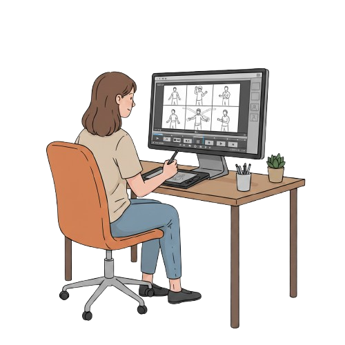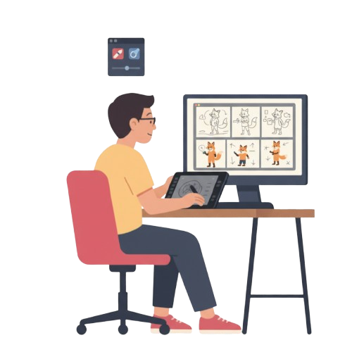 We start by sketching out rough ideas and storyboards. This helps us plan the scenes, movements, and overall flow of the animation before we go into details. It’s the foundation where the story begins to take shape.