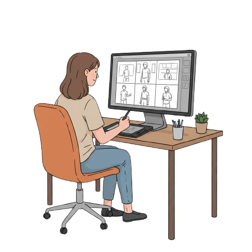 Once the script is ready, we move to design. Our team creates characters, scenes, and backgrounds in a unique 2D style that matches your brand and message. Each element is drawn with care to make your story visually appealing and easy to follow.