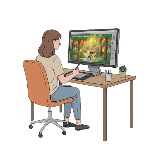 At this stage, everything comes alive. Our animators work frame by frame to make movements smooth and expressive. We focus on timing, expressions, and flow so every action feels natural and keeps the viewer engaged.